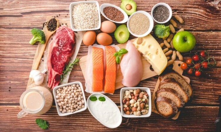 - Thực phẩm giàu protein (thịt gà, trứng, cá)
